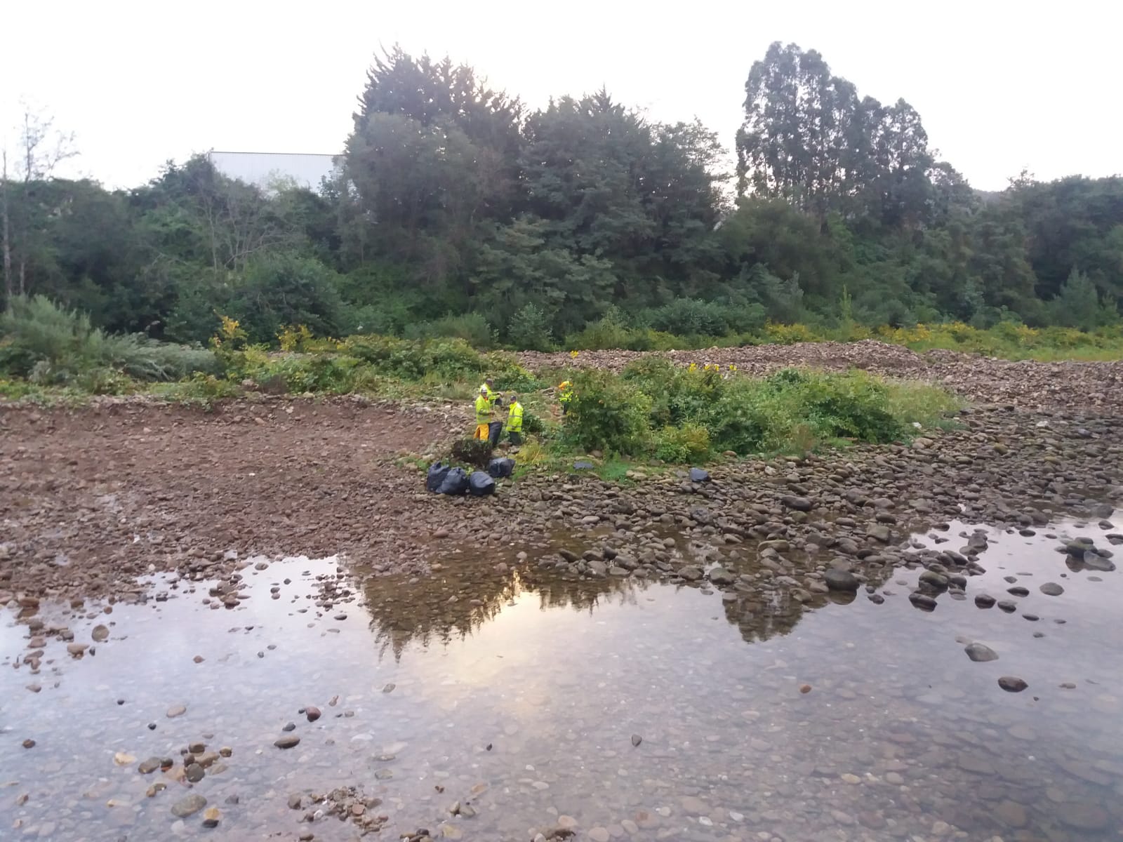 Para posibilitar el inicio trabajos, se realizó una pesca eléctrica con la finalidad de asegurar la supervivencia de las especies fluviales de la zona. Además, en la zona estaba presente la especie vegetal Reynoutria japónica catalogada como especie invasora e incluida en el Catálogo Español de Especies Exóticas Invasoras, por lo que se procedió a su eliminación antes de la entrada de la maquinaria para evitar su dispersión.
