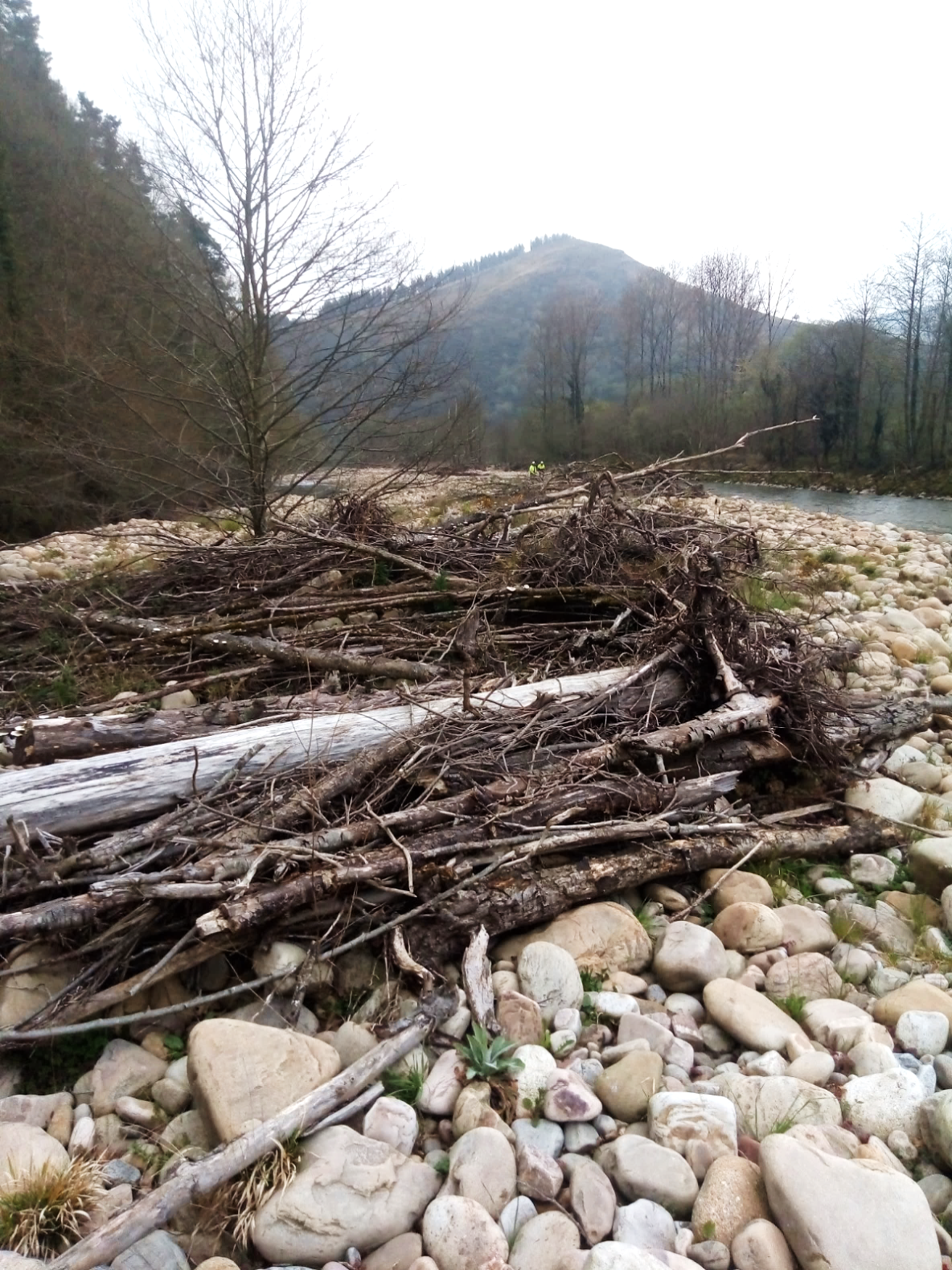 A lo largo del cauce del río Saja se presentan numerosos depósitos de vegetación (árboles caídos, tocones y raíces), así como árboles en pie que, por su ubicación, pueden suponer un obstáculo para el régimen de corrientes.