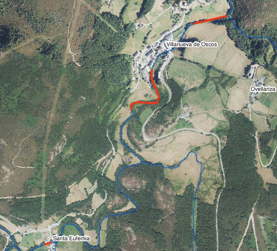- En el arroyo Villanueva, en dos tramos paralelos a la AS-13 situados en los entornos de Villanueva de Oscos y del Ecomuseo del pan en Sta. Eufemia, se han realizado trabajos de desbroce, retirada de restos vegetales de distinta naturaleza y tala de árboles secos, enfermos o con riesgo de caída. El presupuesto final ha sido de 7.232,56€.