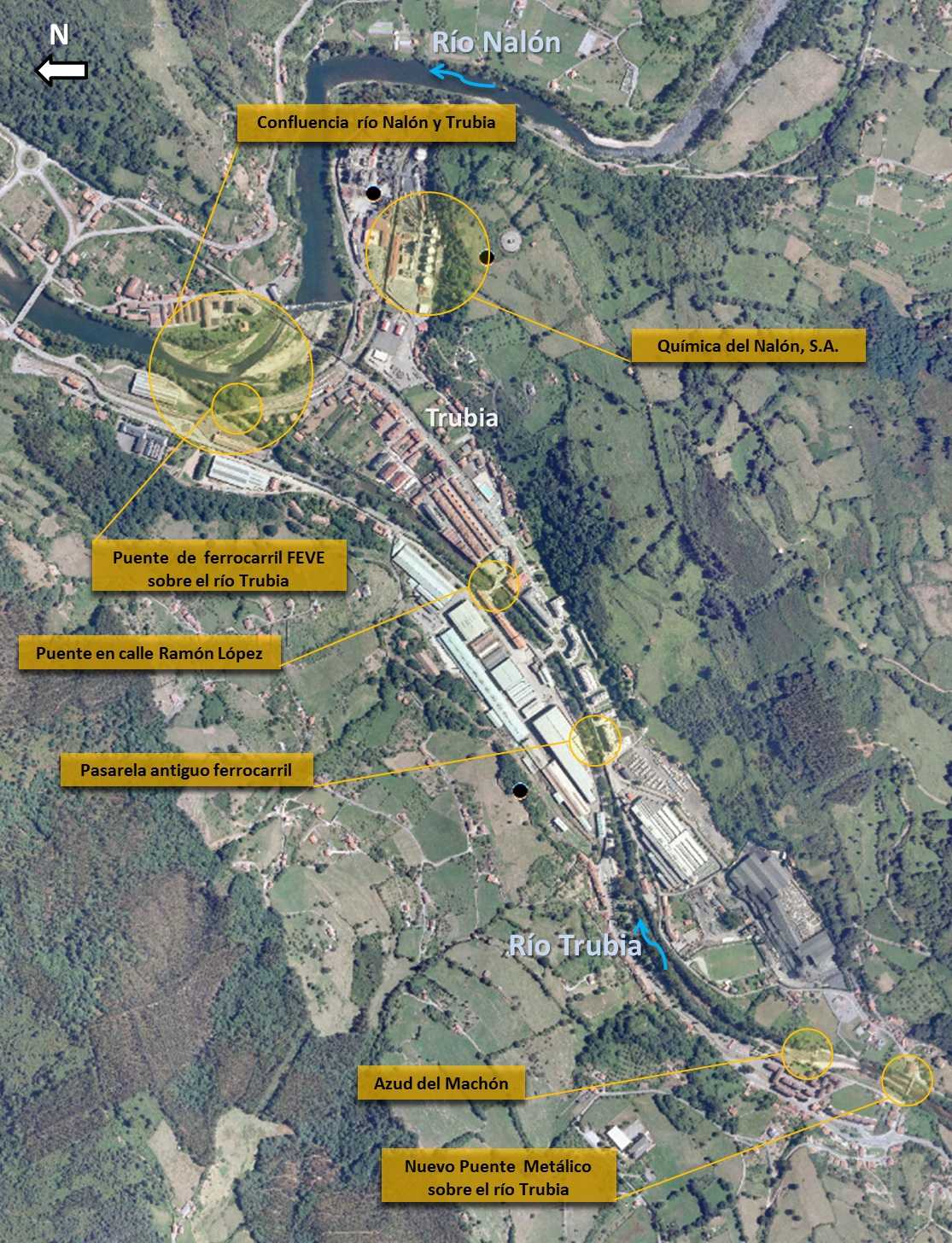 El ámbito del proyecto comprende el río Trubia, entre el puente metálico en la zona de “La Riera” y su confluencia con el río Nalón, y el río Nalón desde Industrial Química del Nalón hasta la confluencia con el río Trubia.