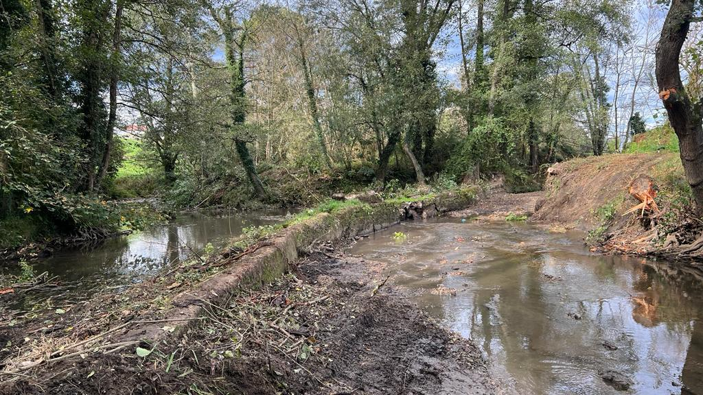 17 de noviembre de 2023- La Confederación Hidrográfica del Cantábrico ha finalizado los trabajos de mejora de la continuidad fluvial del río Nora, en el entorno de Meres, mediante la eliminación de un azud en desuso con el objetivo de recuperar, a lo largo del tiempo, el conjunto de procesos hidrológicos, geomorfológicos y ecológicos propios del río.