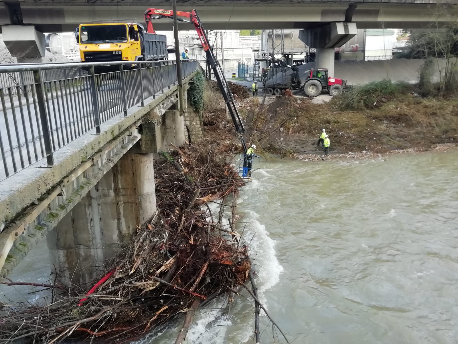 La CHC está procediendo –a través de la empresa pública Tragsa-- a realizar los trabajos necesarios para retirar todos los depósitos acumulados en el puente, despejando los vanos del mismo y recuperando la sección de desagüe.