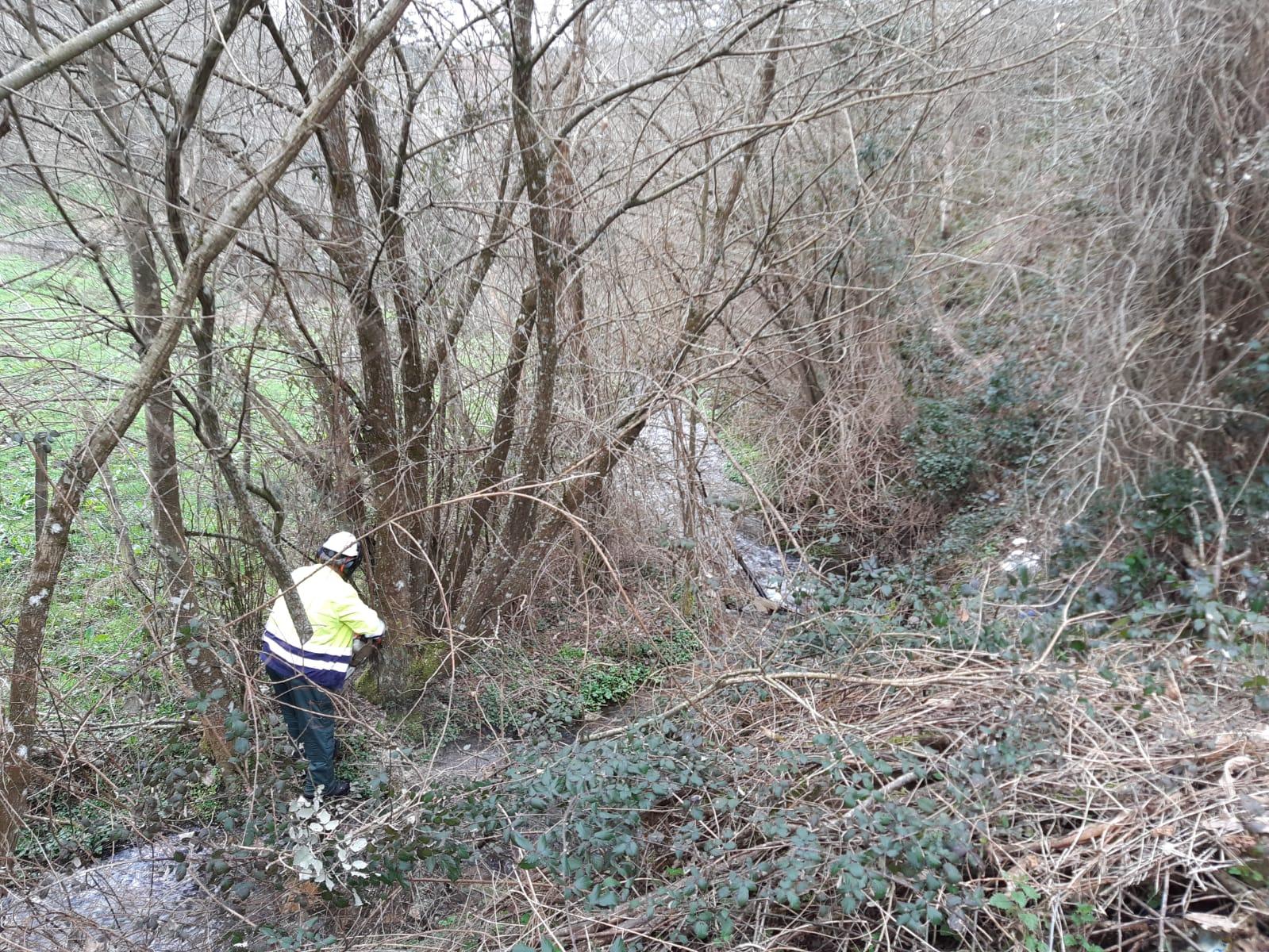 La actuación se ejecuta en un tramo de unos 780 m de cauce con el propósito de adecuar la vegetación de ribera y retirar árboles caídos o con riesgo de caída, de modo que se pueda evitar la formación tapones y mantener la capacidad de desagüe del cauce.