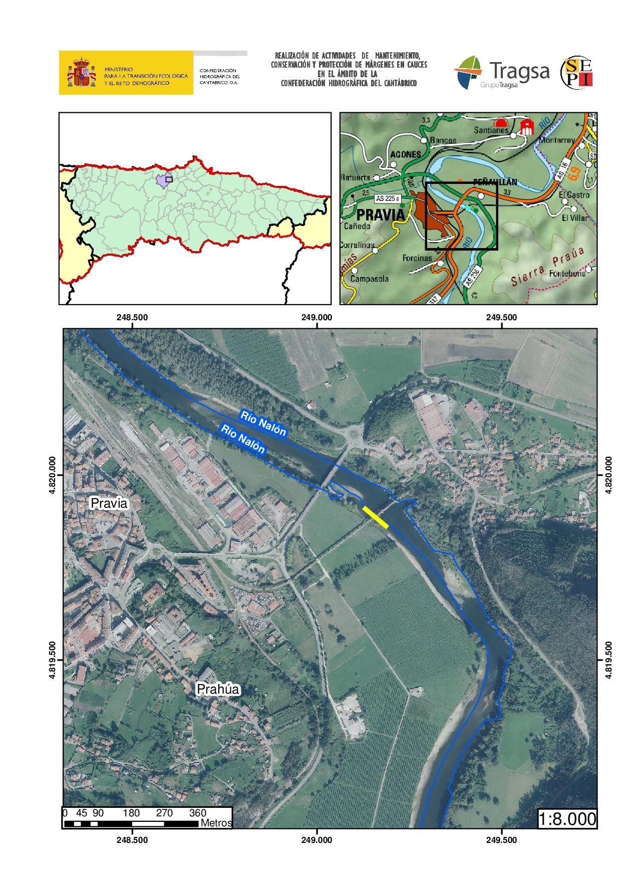 La zona objeto de actuación se corresponde con el entorno comprendido entre los puentes del ferrocarril y el de la carretera AS-16 a la altura de la capital del municipio.