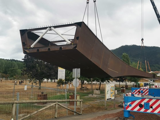 La Confederación Hidrográfica del Cantábrico avanza en la instalación del nuevo puente sobre el río Piloña en Arriondas