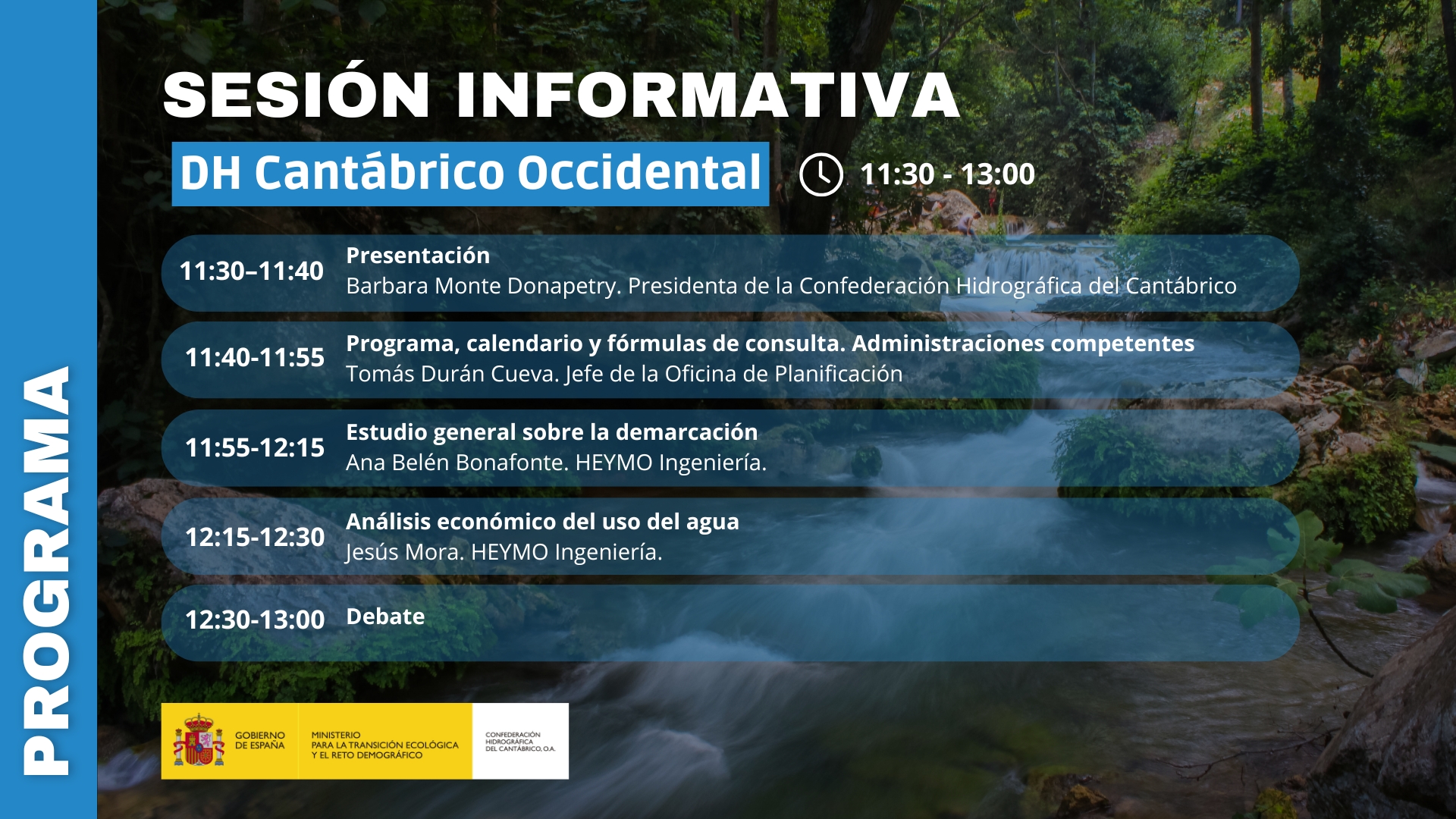 La Confederación Hidrográfica del Cantábrico organiza una sesión informativa telemática sobre los Documentos iniciales de los Planes Hidrológicos de la Demarcación Hidrográfica del Cantábrico Occidental el próximo jueves 27 de febrero de 2025.