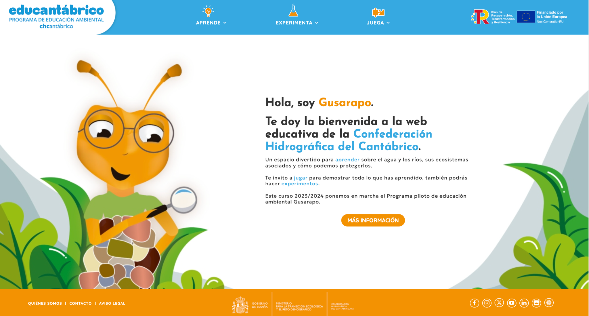 16 de enero de 2024- La Confederación Hidrográfica del Cantábrico desarrolla una página web de educación ambiental, www.educantabrico.es, que está dirigida a la infancia y orientada como apoyo al profesorado de Educación Primaria para la formación de contenidos relacionados con el agua y los ecosistemas fluviales.