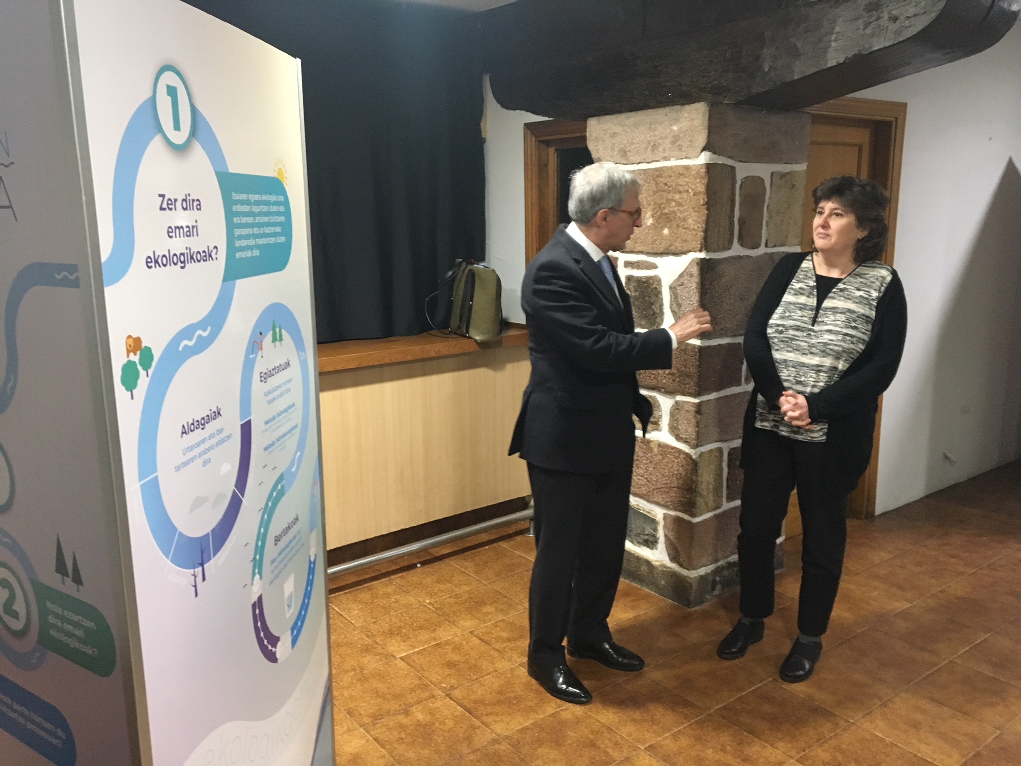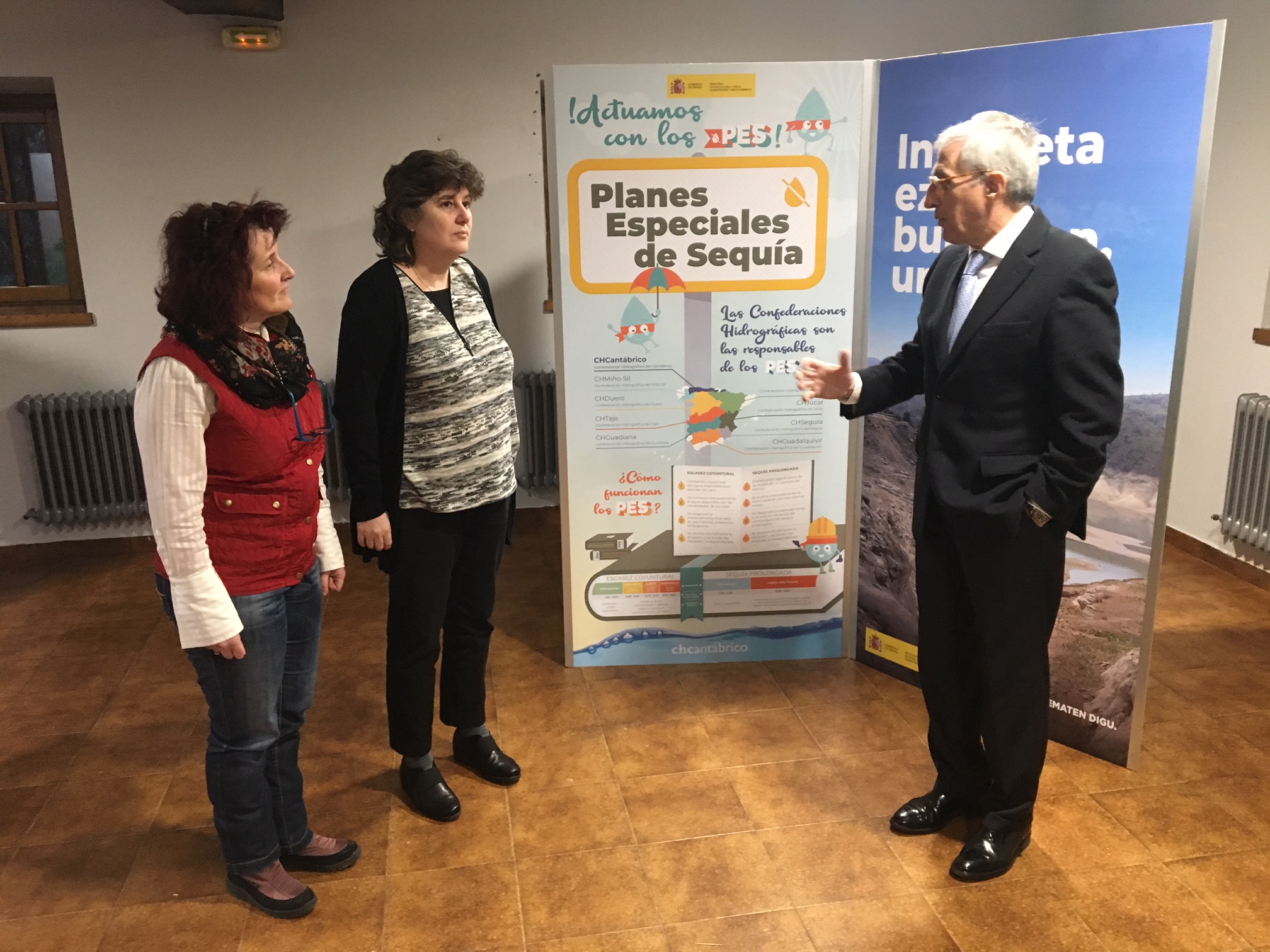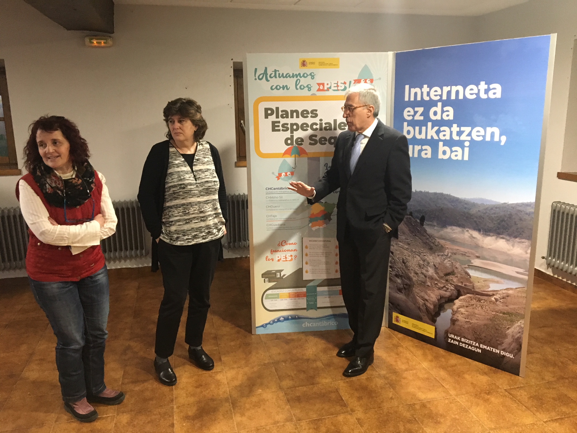 15 de marzo de 2018 - El presidente de la Confederación Hidrográfica del Cantábrico, Ramón Álvarez Maqueda, ha inaugurado hoy en el Ayuntamiento de Donetztebe/Santesteban (Navarra) una doble exposición sobre los Planes Especiales de Sequía (PES) y la concertación de caudales ecológicos que actualmente se encuentran en exposición pública. El Presidente del Organismo de cuenca estuvo acompañado de la Directora General de Medio Ambiente del Gobierno de Navarra, Eva García Balaguer y de la Teniente Alcalde del municipio, Margarita Erdozain Azpilicueta.
