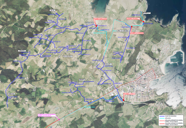 - Estaciones de bombeo: Se proyectan cuatro nuevas estaciones de bombeo de aguas residuales (EBAR) en Bañugues, Moniello, La Corona y Luanco.