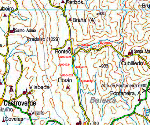 - En A Ponte, dos estructuras de mampostería de 8 metros de largo y 2 metros de altura la primera, y 7 metros de largo y 0,3 metros de altura la segunda.
