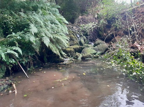 En A Fonteo, un azud de mampostería y hormigón de 10 metros de largo y 0,8 metros de altura.
