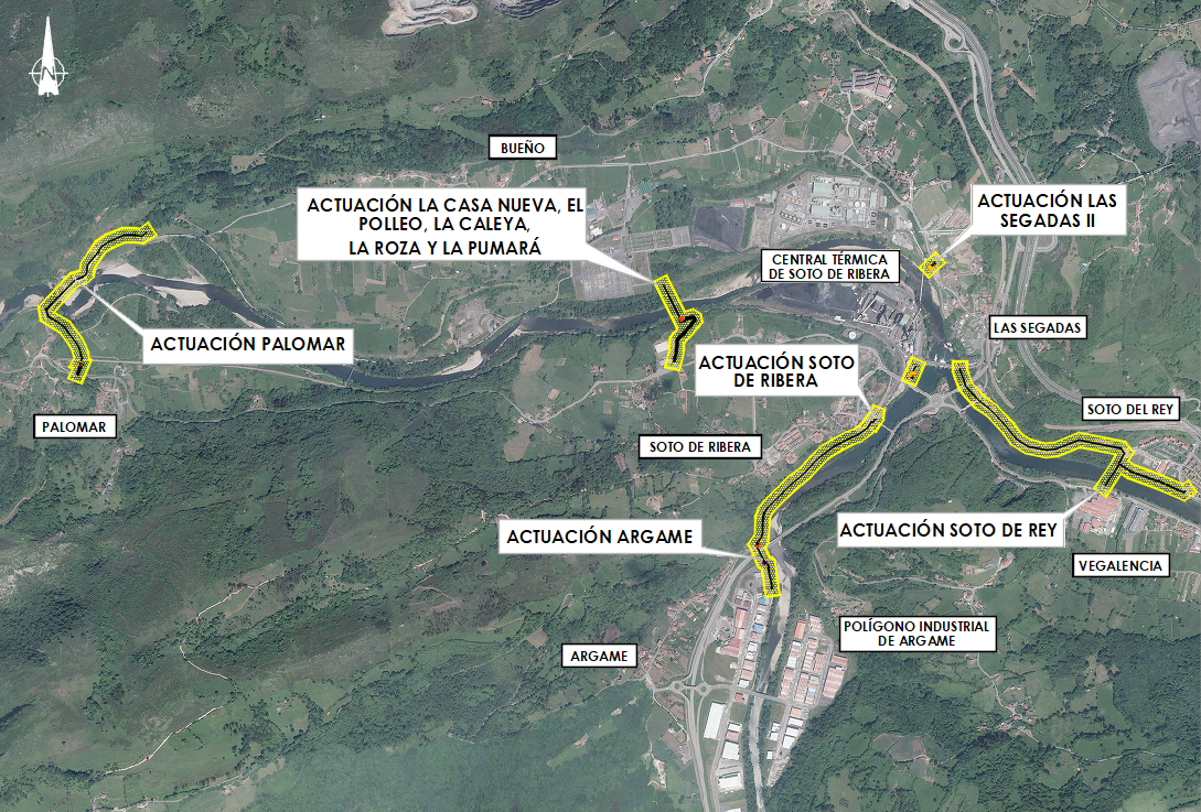 El objeto de esta actuación es dar solución a los vertidos de varios núcleos situados en la cuenca media del río Nalón, en los concejos de Morcín, Oviedo y Ribera de Arriba, que quedaron sin conectar con el citado sistema general de saneamiento y adolecen actualmente de un tratamiento adecuado de sus aguas residuales. El proyecto incorpora al colector general del río Nalón los vertidos del núcleo de Argame, donde se recogen a su vez los de Santa Eulalia de Morcín y los del polígono industrial de Argame, los vertidos de Tellego, Vegalencia y Soto de Rey, además de los vertidos de Soto de Ribera y de Palomar, con una población total servida en torno a 12.000 habitantes equivalentes, para su tratamiento en la EDAR de Las Caldas.
