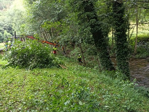 Los trabajos se realizan a través de la empresa pública Tragsa dentro del Programa de mantenimiento y conservación de cauces que desarrolla la Confederación Hidrográfica del Cantábrico fuera de las zonas urbanas, ya que en las zonas urbanas las labores de conservación y mantenimiento de cauces son competencia de los ayuntamientos.