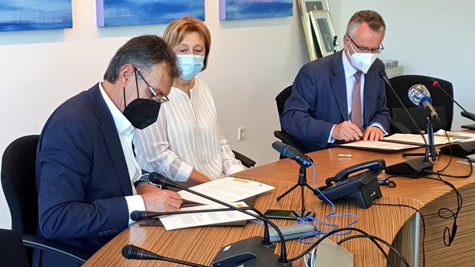 23 de julio de 2021- Con la presencia de la Delegada del Gobierno en Asturias, Delia Losa, el presidente de la Confederación Hidrográfica del Cantábrico, Manuel Gutiérrez, y el alcalde de Gozón, Jorge Suárez, firmaron esta mañana en Gozón un acuerdo de intenciones por el que se regirán a partir de esta fecha las labores de conservación y mantenimiento de los cauces de los ríos del municipio.
