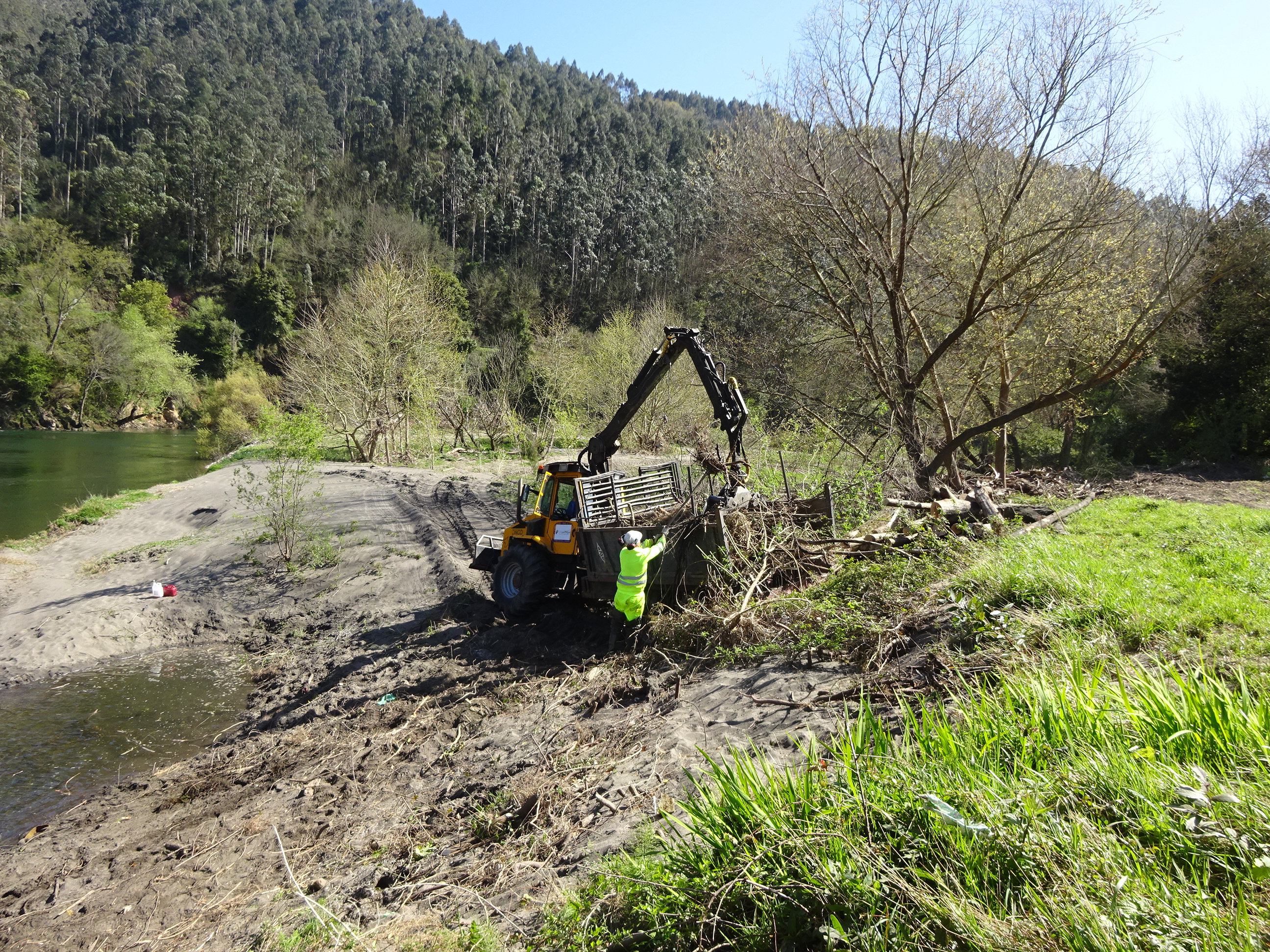 La actuación permite la retirada de árboles y ramajes en puentes, obras de paso y orillas del río en la Vega de Forcinas