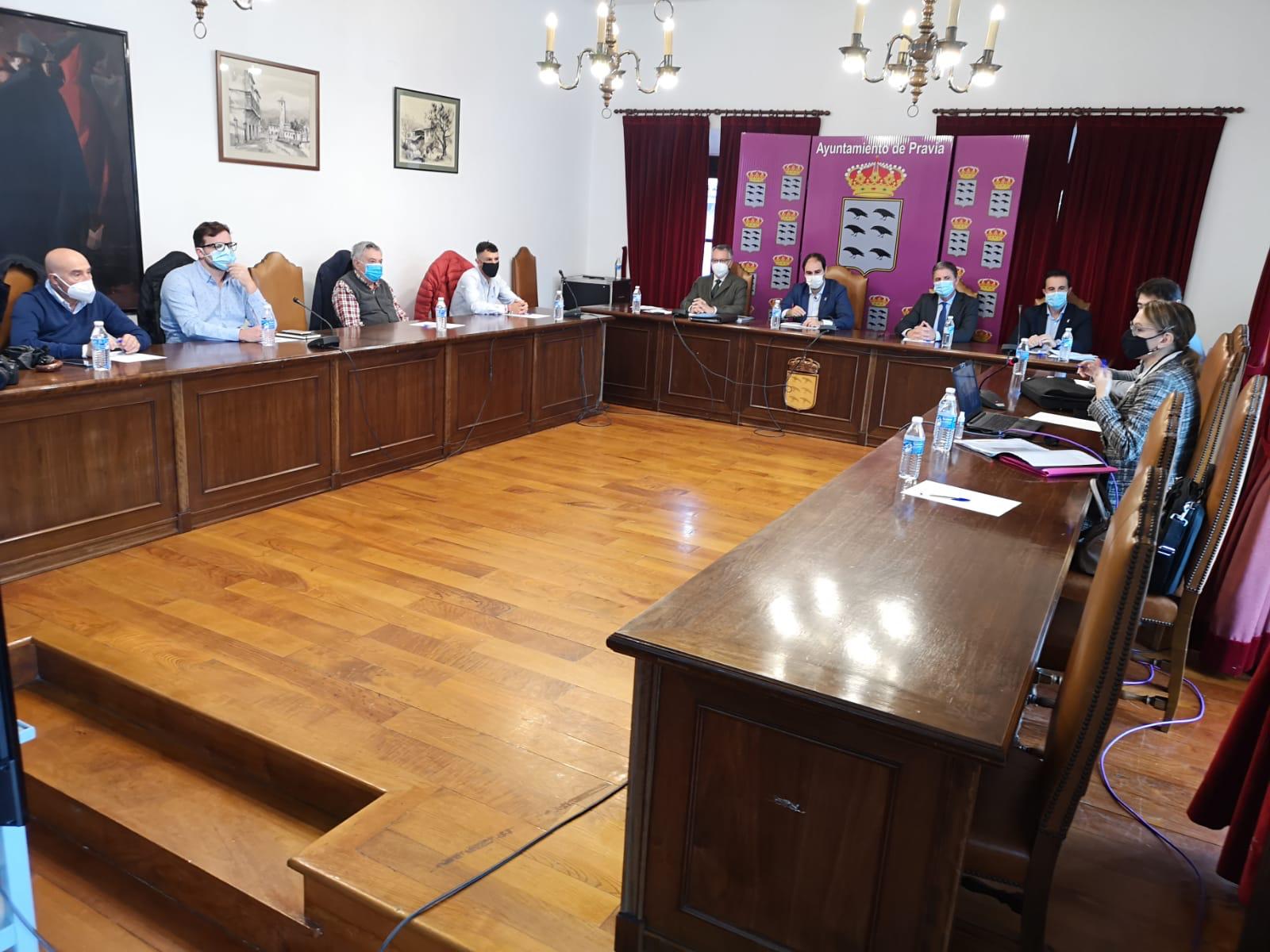 08 de octubre de 2020- El Ayuntamiento de Pravia acogió esta mañana una reunión de trabajo entre las administraciones del Estado, autonómica y municipal para debatir sobre los problemas que la dinámica fluvial genera en las plantaciones situadas en las vegas del bajo Nalón y las posibles formas de mitigarla. El encuentro contó con la presencia del presidente de la Confederación Hidrográfica del Cantábrico, Manuel Gutiérrez, el Comisario de Aguas de este Organismo, Jesús María Garitaonandia, y el director de Agricultura y Pesca de la Delegación del Gobierno en Asturias, Enrique Rodríguez, por parte de la Administración del Estado. Por parte de la Administración Autonómica acudió el director general de Medio Natural y Planificación Rural del Principado de Asturias, David Villar. También estuvo en la reunión el alcalde de Pravia, David Álvarez, así como empresarios kiwicultores que ejercen su actividad en el bajo Nalón y que fueron invitados al encuentro.