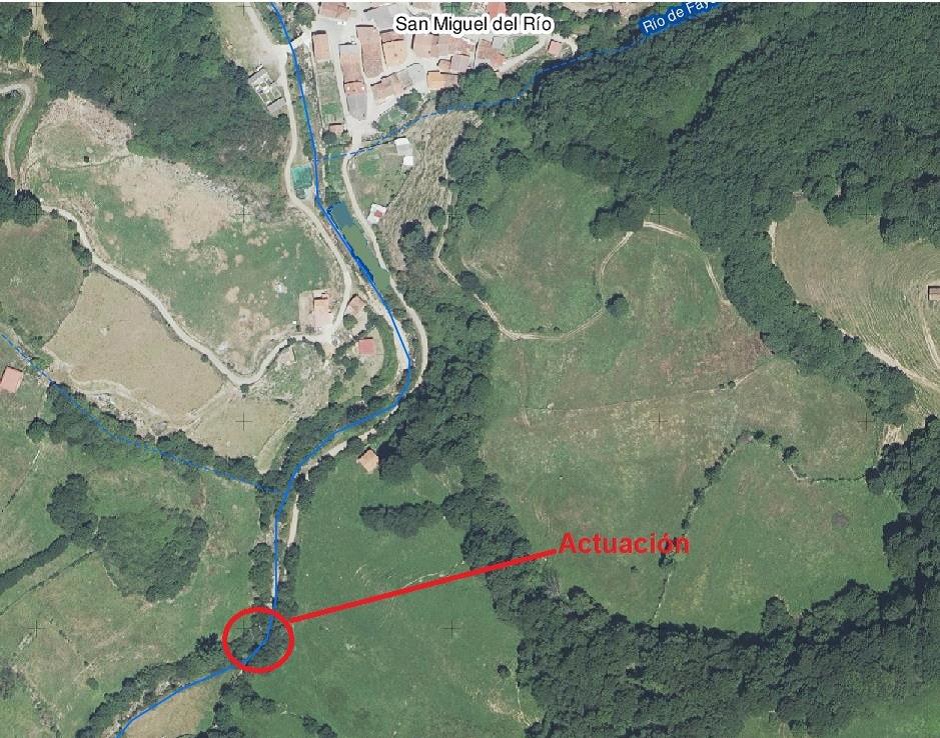 En el río Pajares, unos 300 metros aguas arriba de la localidad de San Miguel del Río, T.M. de Lena, se ha producido una acumulación de áridos en el cauce, con la consiguiente disminución de su sección de desagüe, lo que ha favorecido la erosión de la margen derecha y la desestabilización del talud, con el consiguiente peligro de ruina de la plataforma de un camino rural que discurre a media ladera por su margen derecha.