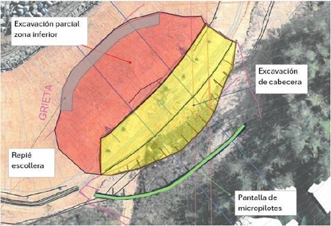 Se han proyectado distintas acciones para prevenir futuros deslizamientos y garantizar la estabilidad del terreno a largo plazo. Se reforzará el terreno con una escollera sobre el talud, asimismo se mejorará el drenaje de la zona afectada. Paralelamente, se realizará una campaña continua de reconocimientos geotécnicos y análisis para ajustar la solución conforme avancen las obras y hacer frente a cualquier eventualidad.