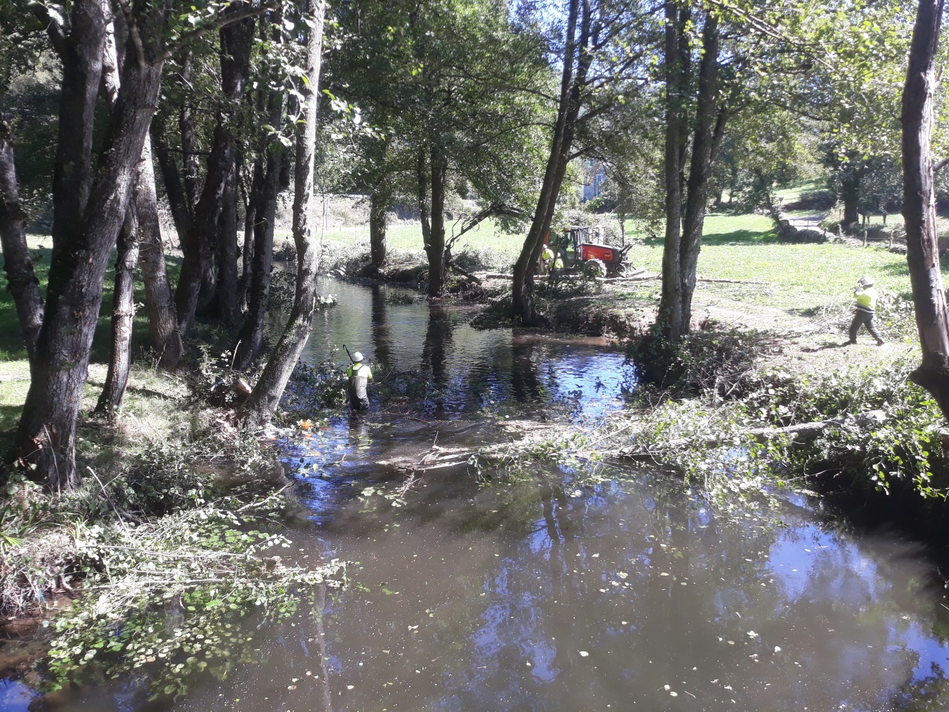 La actuación ha consistido, fundamentalmente, en la retirada de restos vegetales depositados en el cauce del río que habían sido arrastrados por la corriente, formando tapones que impedían el correcto discurrir de las aguas. También se han retirado numerosos árboles secos con posibilidad de caer en el cauce y producir posteriores tapones.