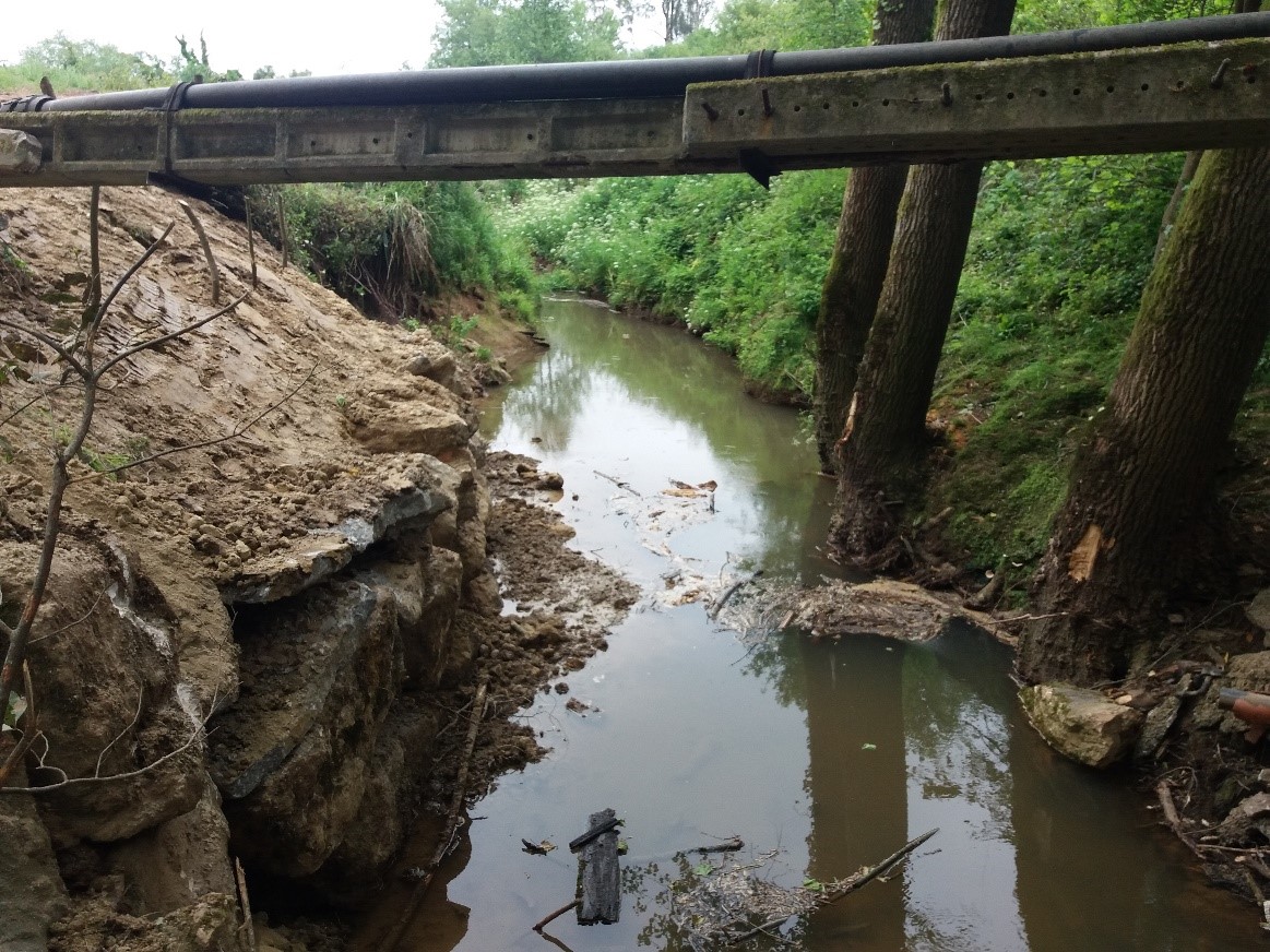 En las inmediaciones de la localidad de Santa Marina, el arroyo Del Capitán presentaba importantes acumulaciones de material vegetal y árboles caídos en mitad del cauce que reducían su capacidad de desagüe. Además, en un punto la margen izquierda la escollera existente se había desmoronado por la erosión del propio cauce.