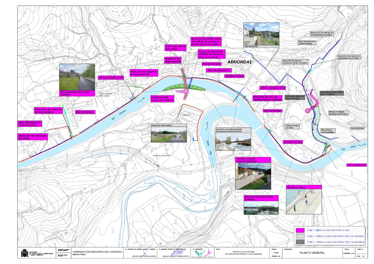 - La primera fase del proyecto comprende, entre otras, la ejecución de la red de drenaje en el río Piloña y Sella y la defensa de distintas zonas del margen de ambos cauces