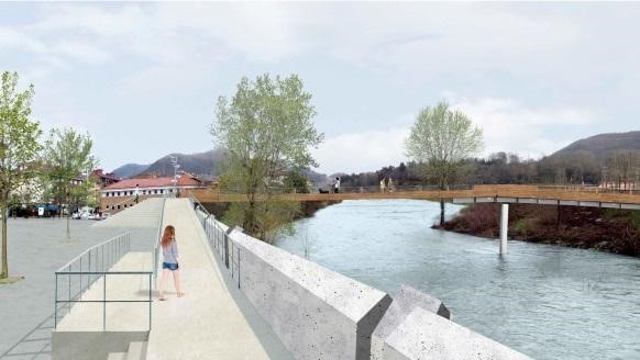 ● La ejecución de un nuevo paseo escalonado a doble altura en la zona del río Sella con tres accesos al cauce, uno de los cuales se proyecta como zona de descanso y mirador.