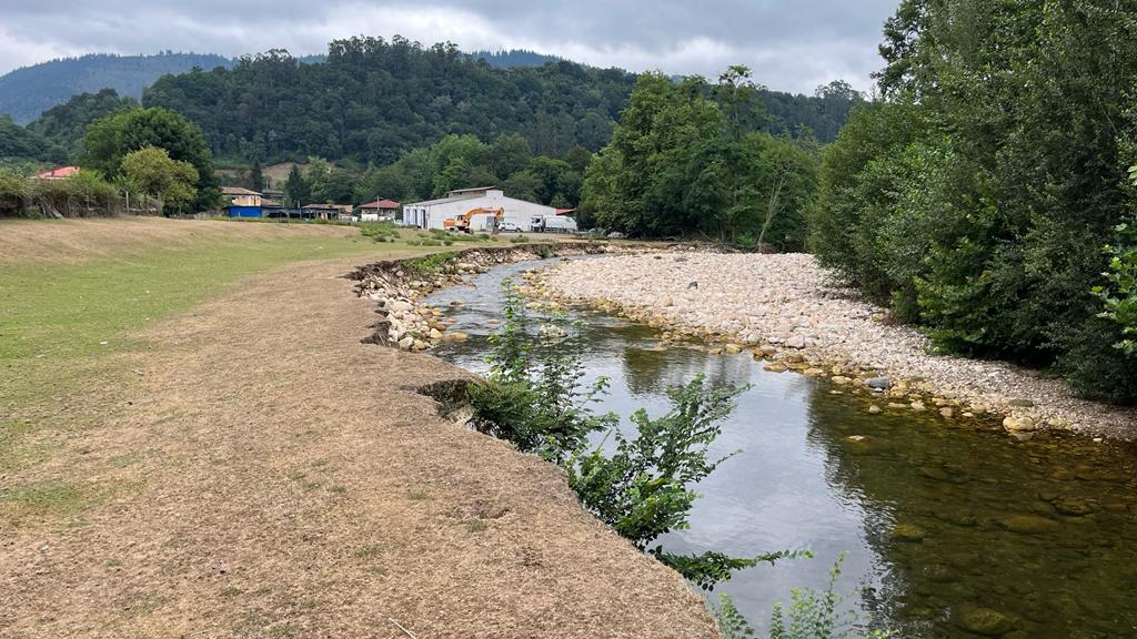 La Confederación Hidrográfica del Cantábrico consolida un tramo de margen erosionado en el río Espinaredo en Piloña (Asturias)