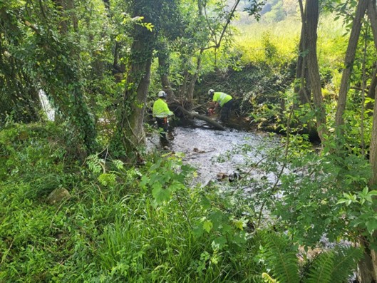 14 de mayo de 2024- La Confederación Hidrográfica del Cantábrico ha iniciado los trabajos de mantenimiento, conservación y mejora en el río Paraxas en las inmediaciones de Aciana, en el municipio de Salas.
