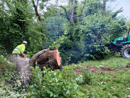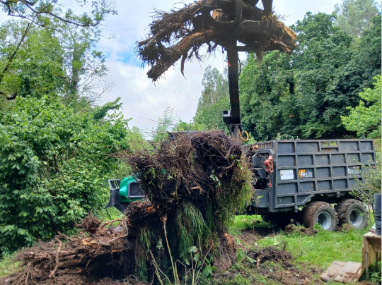 Las actuaciones se ejecutan en un tramo de unos 10 m y cuentan con un presupuesto inicial de 2500 €. Las labores principales consisten en la retirada de un árbol de gran tamaño caído perpendicularmente al cauce y sobre una finca particular. El objetivo de estos trabajos es mantener la capacidad de desagüe del cauce y evitar posibles inundaciones y daños a infraestructuras.
