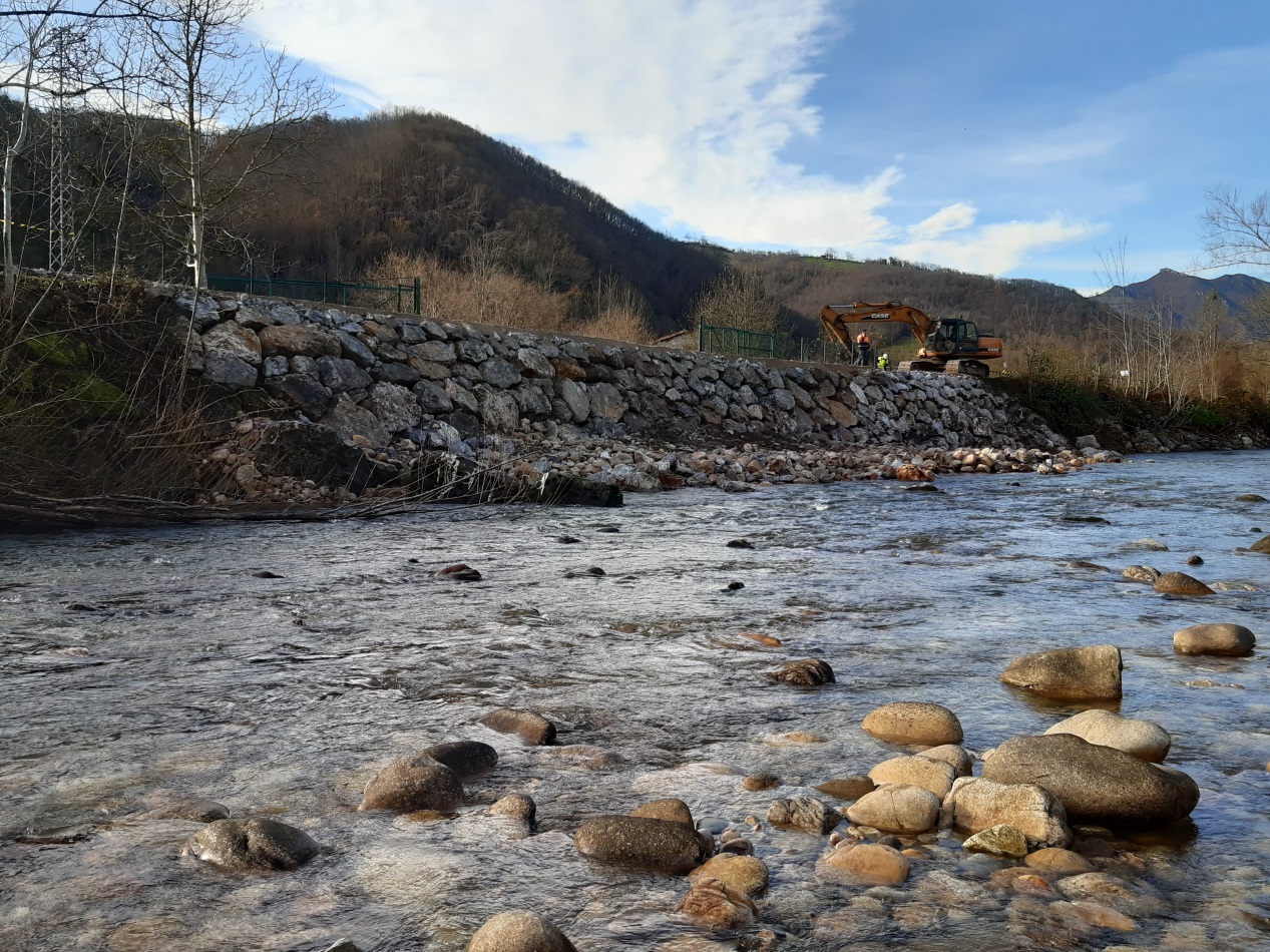 Los trabajos han consistido en la reposición de un tramo de escollera existente, ejecutado por la propia Confederación y afectada por procesos erosivos, estabilizando la margen izquierda del río Nalón en un tramo de 45 metros, dando continuidad a la defensa existente en el tramo y mitigando potenciales afecciones a un camino de servicio que discurre por la margen.