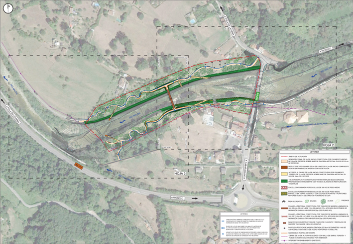 - Accesos al río: Se construirán accesos directos al cauce, algunos con entramados de madera tipo Krainer para crear refugios para la fauna acuática.