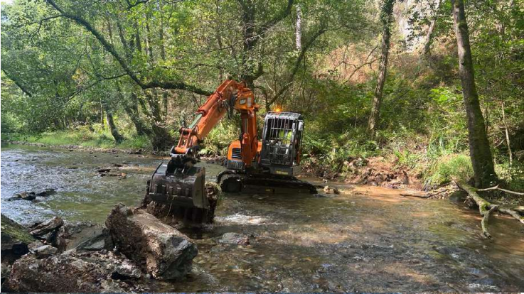Estos trabajos se realizan a través de la empresa pública Tragsa dentro del Programa de recuperación fluvial y mejora de la continuidad en el ámbito de la Confederación Hidrográfica del Cantábrico.