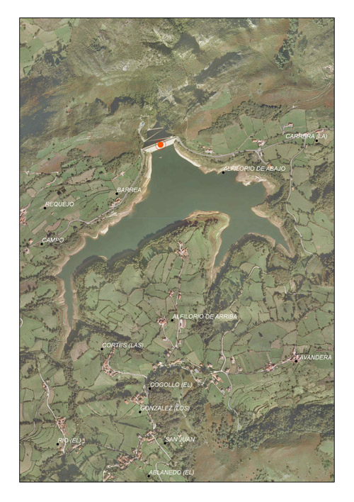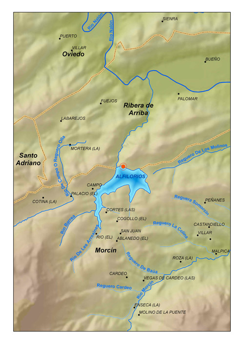 Situación del embalse de Los Alfilorios (Asturias)