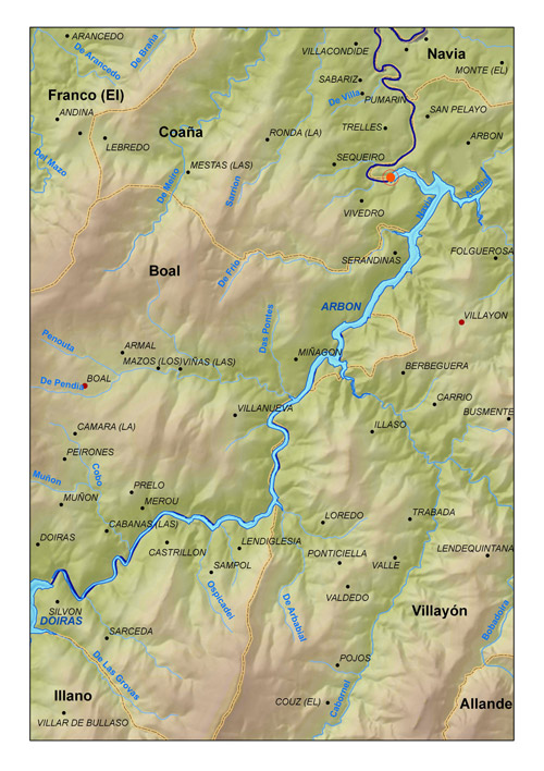 Situación del embalse de Arbón (Asturias)