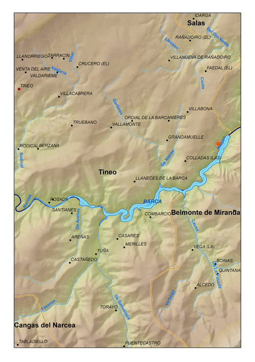 Localización del embalse de La Barca (Asturias)