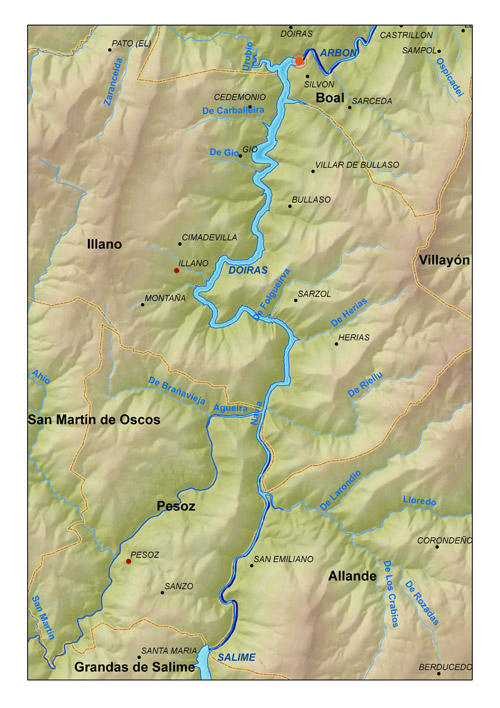 Situación del embalse de Doiras (Asturias)
