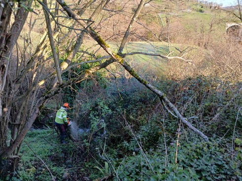 La Confederación Hidrográfica del Cantábrico trabaja en la conservación del barranco de Sorribas en el municipio de Lena