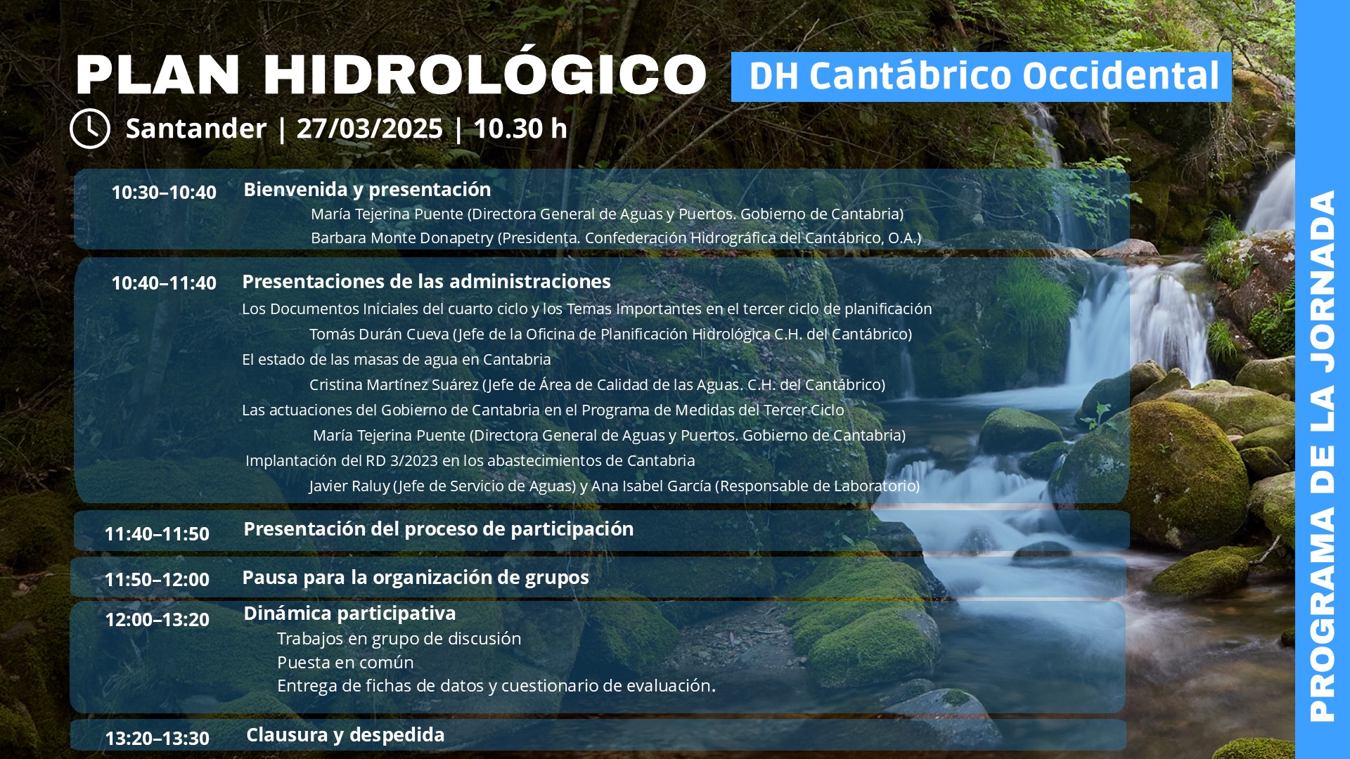 - Presentación: Las actuaciones del Gobierno de Cantabria en el programa de medidas del tercer ciclo. María Tejerina Puente (Directora General de Aguas y Puertos del Gobierno de Cantabria)
